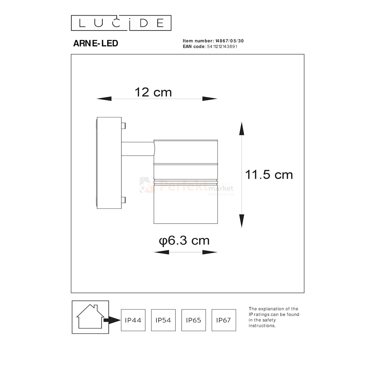 - Klasa szczelności: IP44