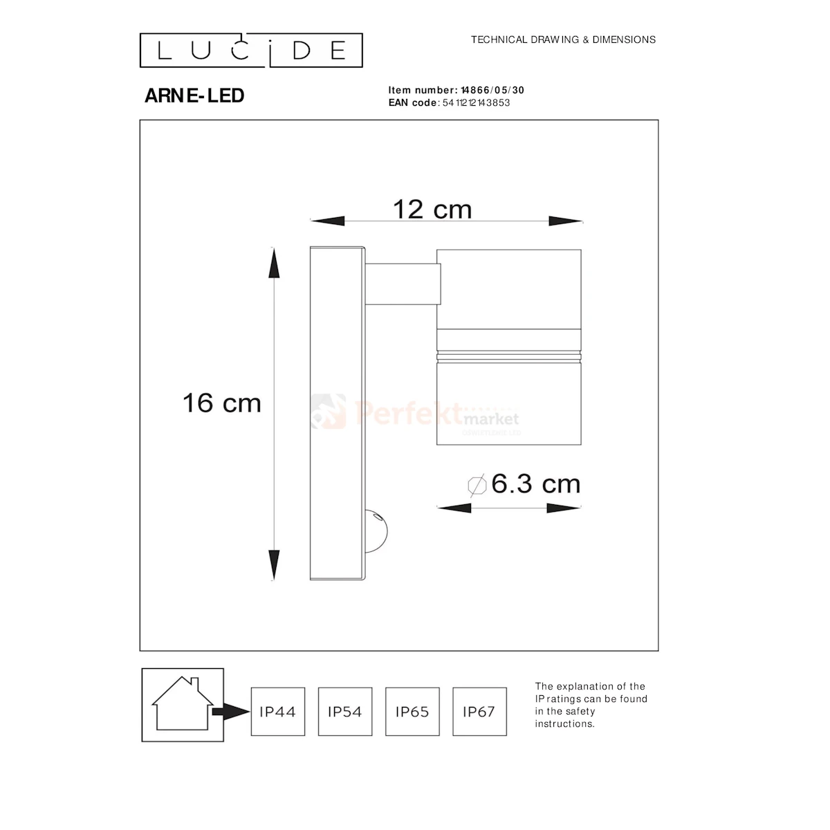 Lampa ścienna zewnętrzna kinkiet z czujnikiem ruchu PIR 1xLED GU10 5W ARNE Lucide czarny