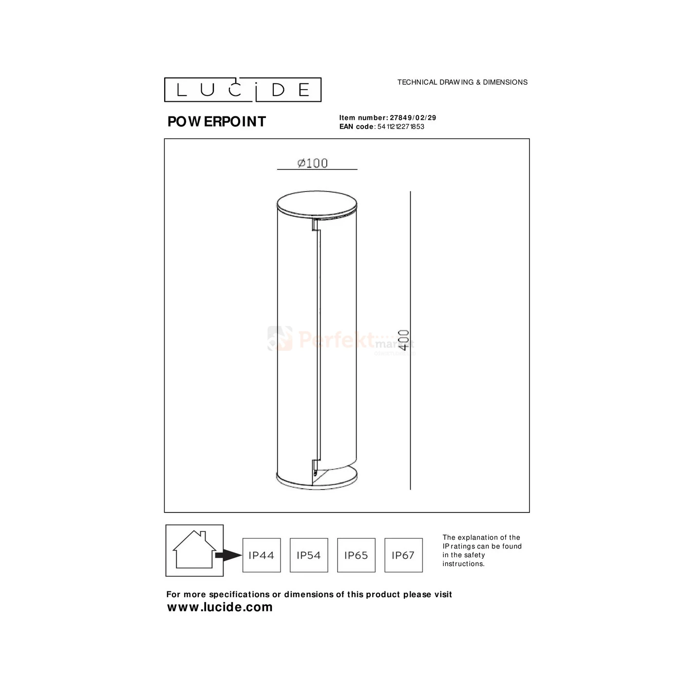 - Klasa szczelności: IP44