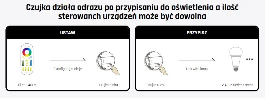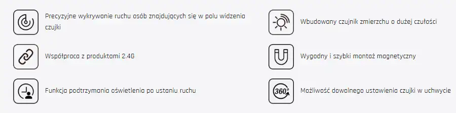 - Typ urządzenia: czujnik ruchu PIR RF 2,4 GHz