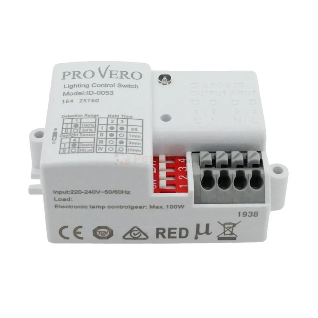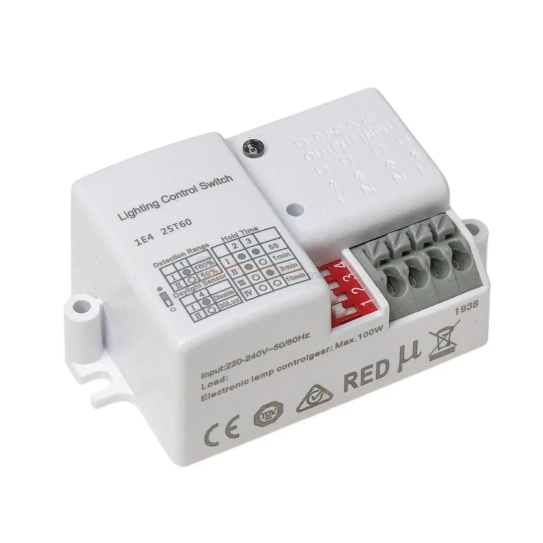 Czujnik ruchu mikrofalowy mini 230V 100W 360° ID-0053, współpracuje ze źródłami światła LED