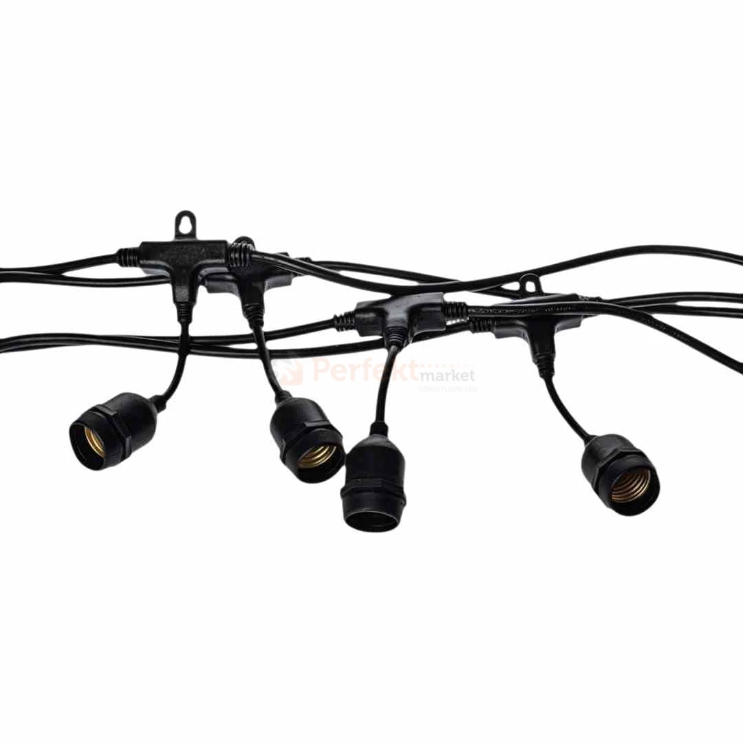Ogrodowa girlanda EKO LIGHT to obowiązkowa pozycja naszego oświetlenia ogrodowego. Girlanda wyposażona w 15 gniazd z wodoodpornymi gniazdami E27 o łącznej długości 15 metrów. Brak żarówek w komplecie.