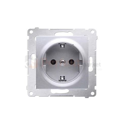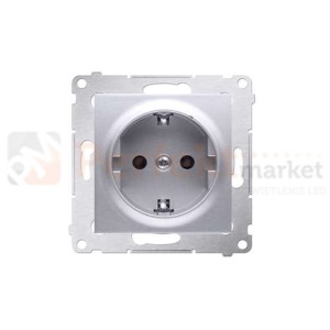 Gniazdo pojedyncze Schucko srebrny mat metalizowany z klapką z uziemieniem z przesłonami styków Simon DGZ1Z.01/43
