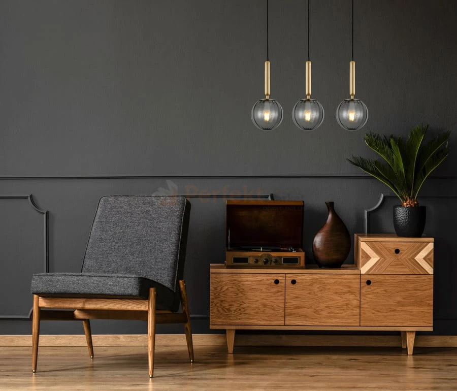 Italux Ravena PND-2324-3L BRO+SG lampa wisząca mosiądz klosz dymiony