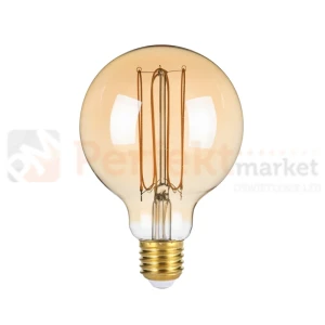 Dekoracyjne źródło światła LED o pięknej bursztynowej bańce w kształcie kuli, nada charakteru nie jednej aranżacji oświetlenia w stylu loftowym, industrialnym oraz boho. Włókno filamentowe w lampie jest dekoracyjnie przeprowadzone, imitując naturalne tradycyjne źródło światła, tzw. lampy Edisona przy czym jest lampą energooszczędną.