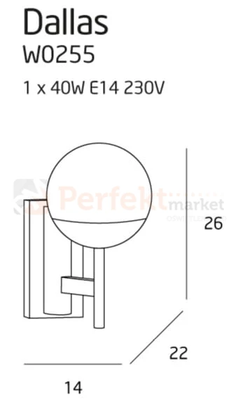 Kinkiet Dallas czarny kula biała MaxLight W0255