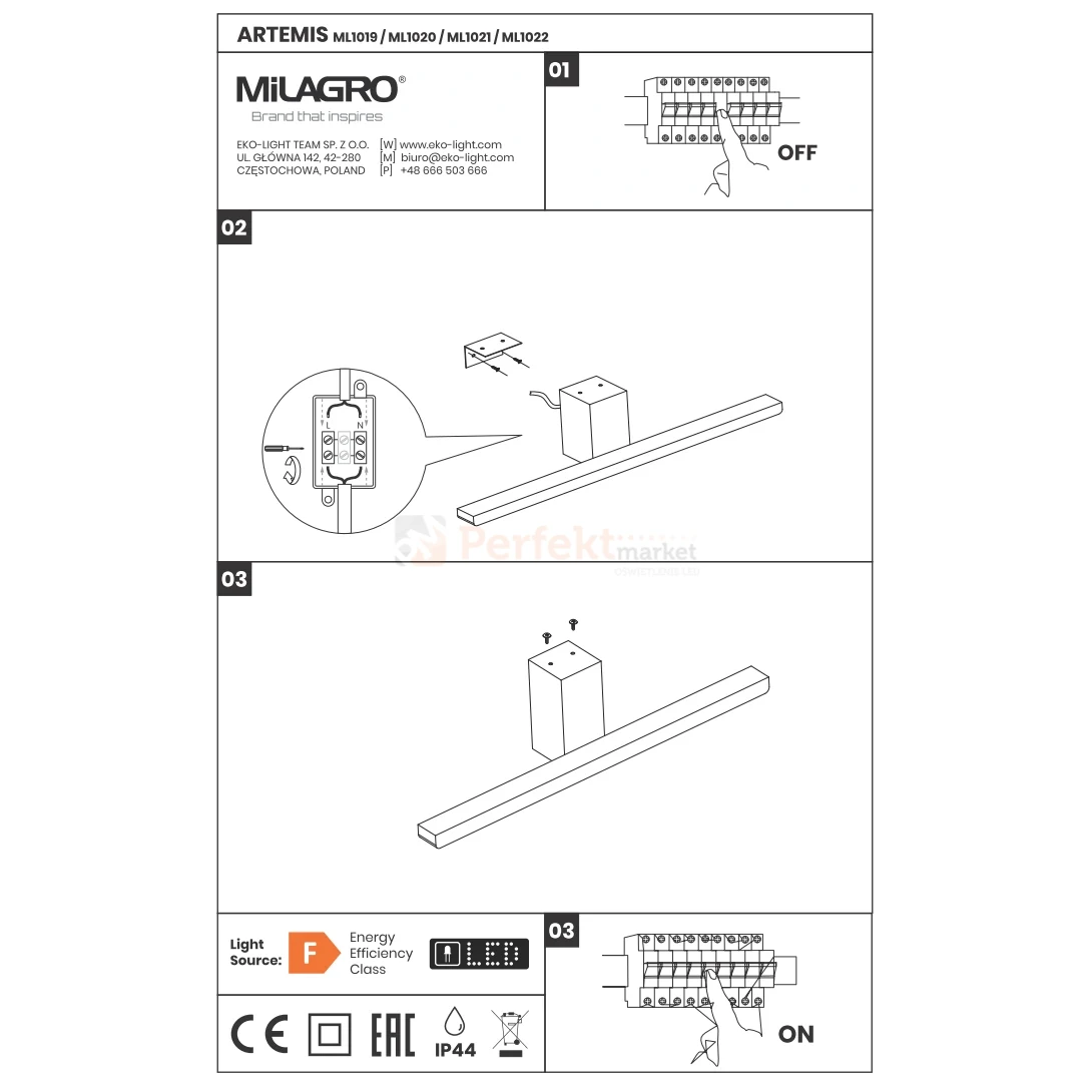 - Klasa szczelności: IP44