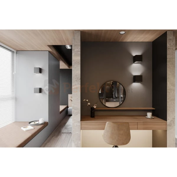 Kinkiet rozprasza światło do góry jak i dołu sprawdzając się tym samym jako oświetlenie ścian, schodów.