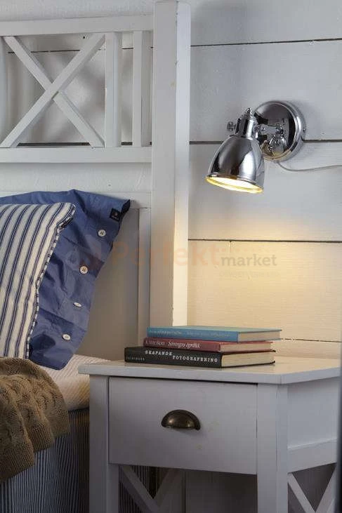 Piękny kinkiet łączący w sobie skandynawski styl i nowoczesność. Chromowana oprawa na ruchomym ramieniu doda blasku każdemu wnętrzu. Regulowany uchwyt pozwala na łatwe ustawienie kierunku światła. Wbudowany klasyczny włącznik góra/dół na przyściance dopełnia całości. Lampa Markslojd Fjallbacka to świetna propozycja jako oświetlenie do sypialni np. nad łóżkiem. Jej staranne wykonanie oraz dopracowane szczegóły ozdobią nie tylko mieszkanie ale również wnętrza komercyjne, restauracje, puby. W oprawie zastosowano trzonek E14 230V dzięki czemu mamy możliwość wyboru wśród wielu nowoczesnych energooszczędnych żarówek LED.