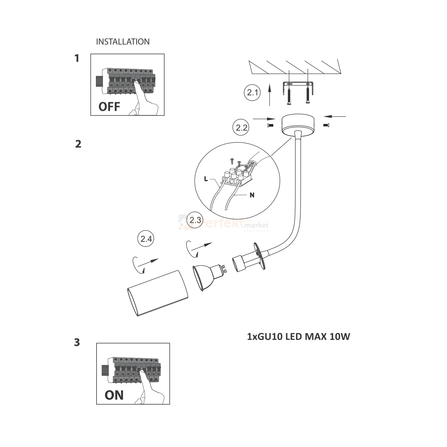 - Typ źródła światła: 1xGU10 (wymienne)