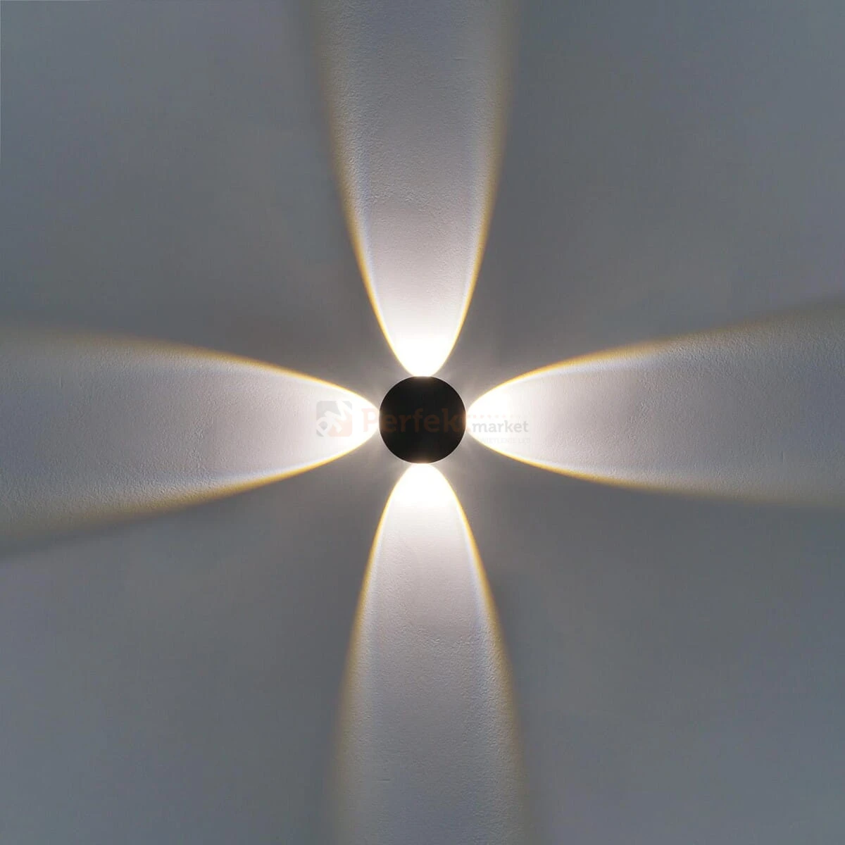 Zewnętrzny kinkiet ścienny ARENEA to połączenie elegancji, nowoczesnego designu i praktycznej funkcjonalności. Wyposażony w cztery niezależne źródła światła LED, rozmieszczone na każdej z czterech stron oprawy, tworzy na ścianie wyjątkowy efekt świetlny – przypominający świetlną gwiazdę. To doskonałe rozwiązanie dla osób, które chcą nadać elewacji swojego domu nowoczesnego charakteru i oryginalnego stylu.