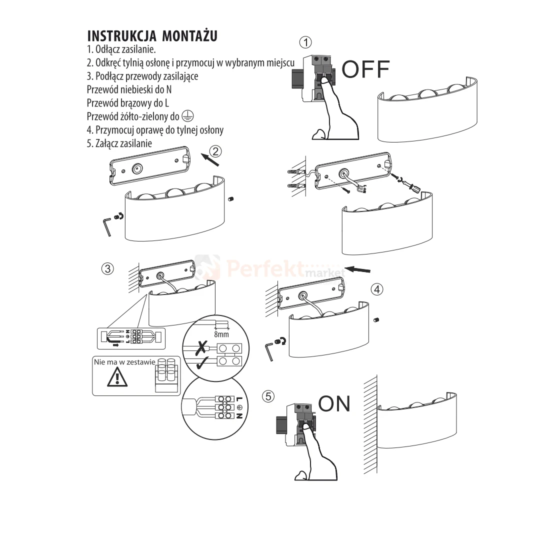 - Typ: lampa zewnętrzna ścienna
