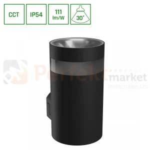 Kąt rozsyłu światła 30° pozwala precyzyjnie doświetlić wybrane strefy, nadając budynkom nowoczesny i elegancki charakter. Źródło światła LED z możliwością zmiany barwy 3000 K / 4000 K / 6000 K pozwala dopasować oświetlenie do indywidualnych preferencji oraz otoczenia.