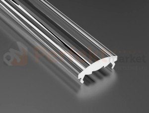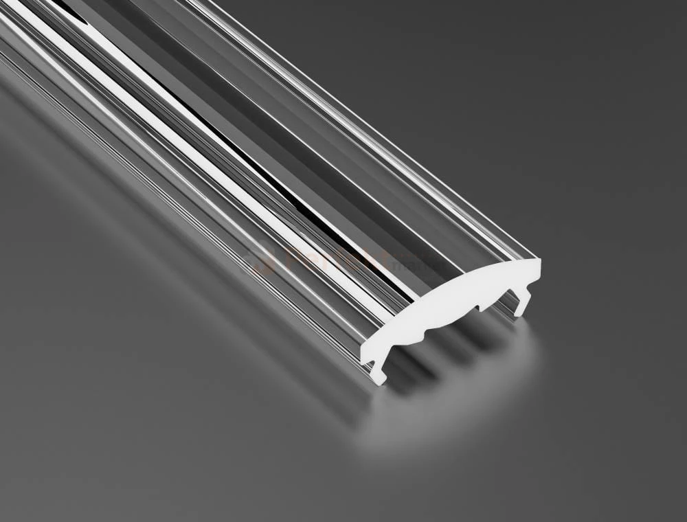 Klosz z tworzywa PMMA (polimetakrylanu metylu) do profili LED, jest to soczewkowa przesłonka przykrywająca umieszczone w profilu aluminiowym taśmy LED