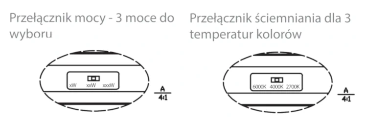 Oprawa wyposażona została również w możliwość regulacji mocy jej świecenia poprzez wygodny przełącznik DIP SWITCH