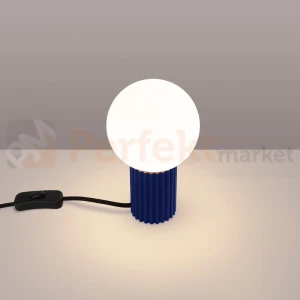 Lampa biurkowa HALO w kolorze ultramaryna, szklana kula na ryflowanej podstawie, Sollux Lighting SL.1741