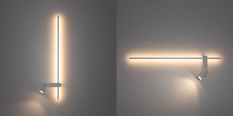 Produkt został zaprojektowany jako kinkiet regulowany, który umożliwia precyzyjną regulację kąta świecenia – idealny przykład kinkietu z regulacją kąta świecenia. Dodatkowo, wyposażony jest w innowacyjną konstrukcję: podłużna część lampy zawiera moduł LED umieszczony w delikatnym profilu, który subtelnie oświetla ścianę, oraz regulowany reflektor przeznaczony na wymienną żarówkę LED GU10 o średnicy 35 mm. Dzięki temu rozwiązaniu lampa może pełnić funkcję zarówno głównego źródła światła, jak i efektownego akcentu dekoracyjnego. Co więcej, kinkiet z wyłącznikiem umożliwia łatwą obsługę i dodatkową kontrolę nad oświetleniem.