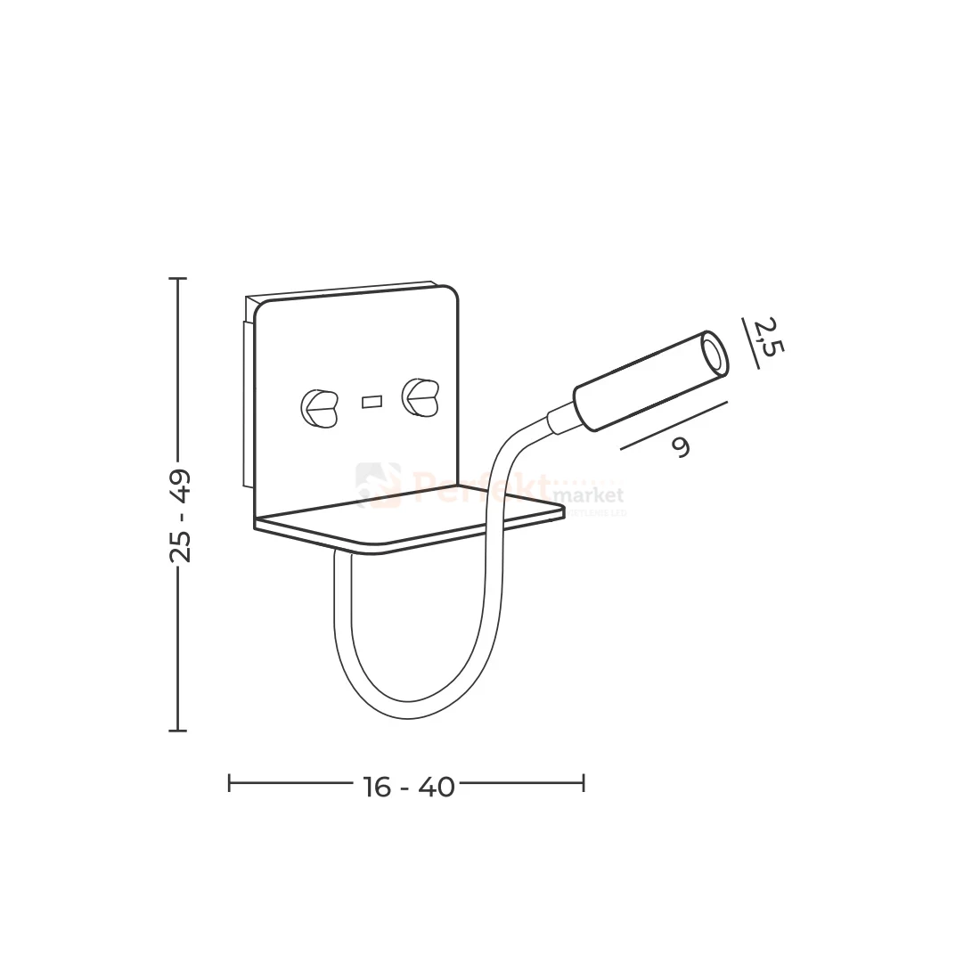 Funkcjonalna lampa ścienna w formie kinkietu z półką i ładującym gniazdem USB. 2 źródła światła LED o barwie białej ciepłej (3000K):
