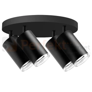 Czteropunktowa, nowoczesna oprawa TURYN to typu spot na okrągłej podstawie z wymiennym źródłem światła, wykonana z wysokiej jakości aluminium w kolorze czarnym, wykończona transparentnymi pierścieniami. Dzięki podwyższonemu IP44 lampa może być zastosowana w pomieszczeniach o zwiększonej wilgotności np. łazience.