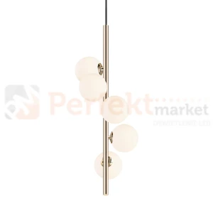 Lampa wisząca ARCTURUS – 5 białych kul, francuskie złoto