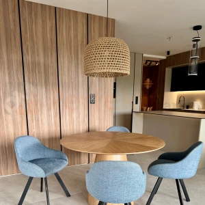Lampa wisząca Kanso łączy w sobie japoński minimalizm z nordyckim ciepłem. Jej forma, oparta na naturalnych materiałach i subtelnej geometrii, sprawia, że idealnie komponuje się z nowoczesnymi aranżacjami, zachowując przy tym miękkość i przyjazny charakter. To więcej niż lampa – to element wnętrza, który wprowadza równowagę i światło inspirowane naturą.