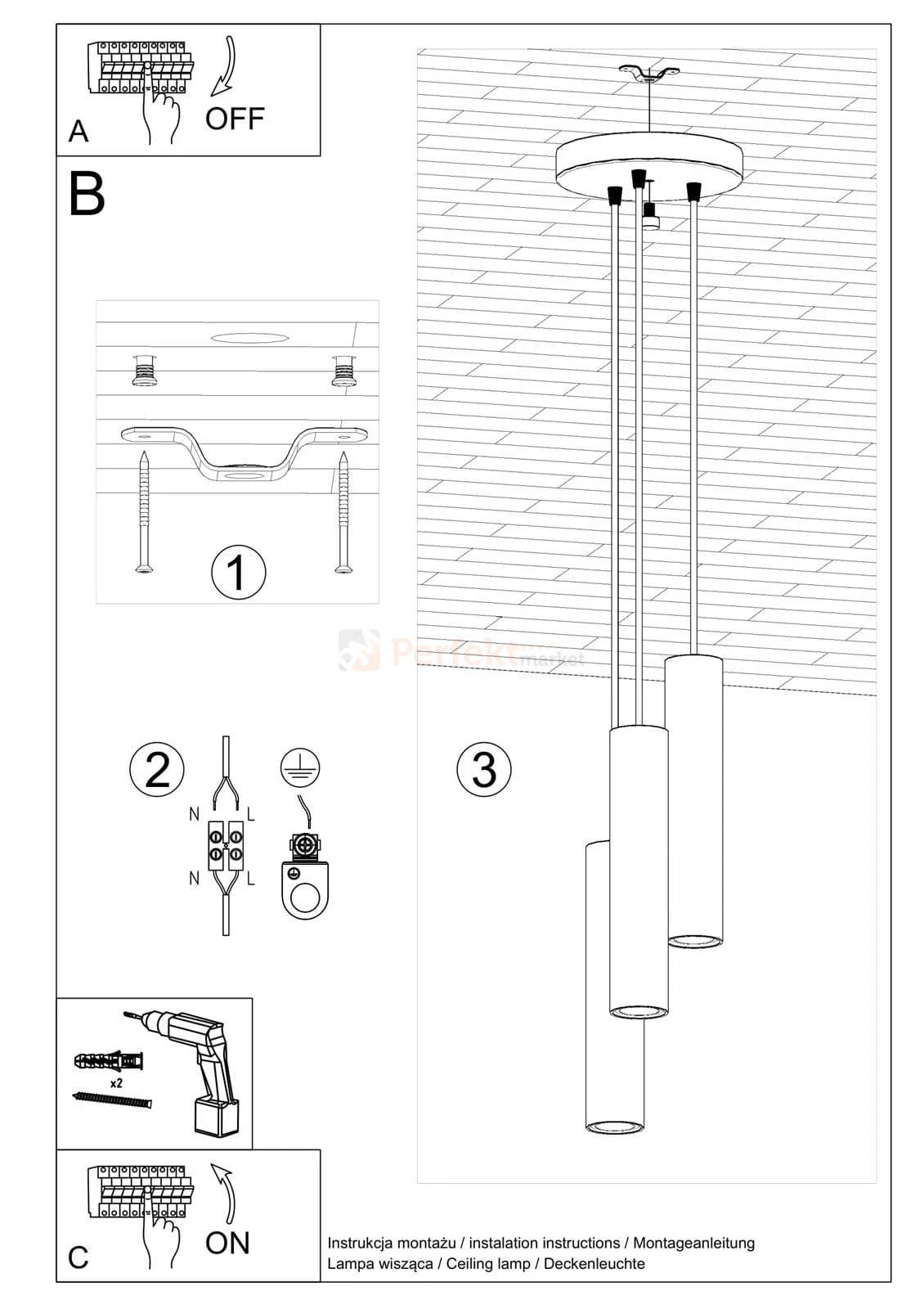 | Moc źródła światła: | 3 x max 40W (brak w komplecie) |