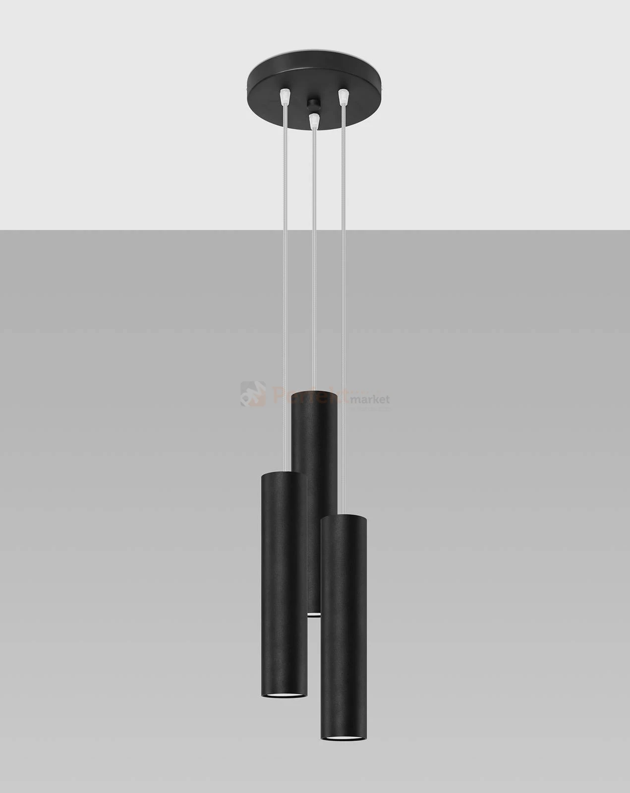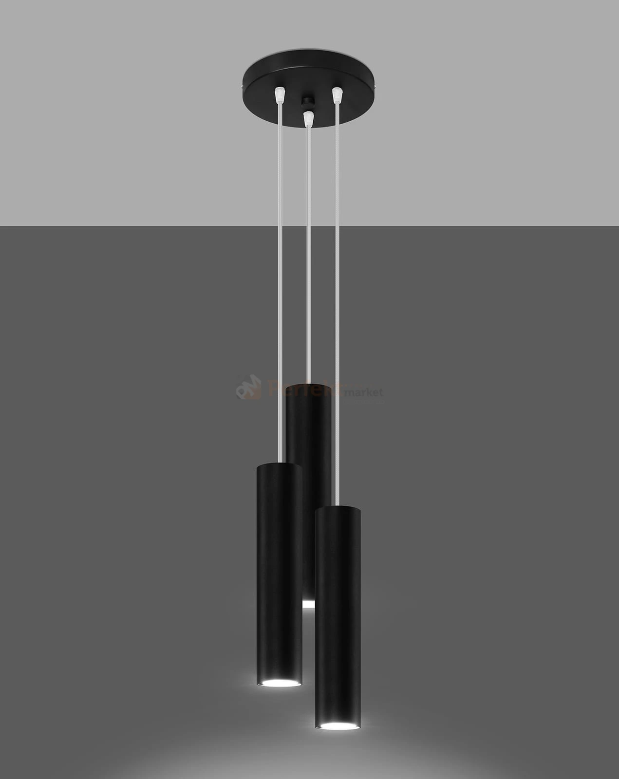 Lampa wisząca LAGOS 3P na kole tuby, walce czarne Sollux SL.1079