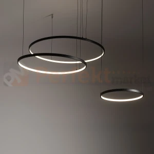 Oprawa Circolo to 3 niezależne ringi ze światłem LED o średnicach: 30cm, 45cm, 60cm zwisające na regulowanych linkach.