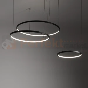 Oprawa Circolo to 3 niezależne ringi z światłem LED o średnicach : 30cm, 45cm, 60cm zwisające na regulowanych linkach.