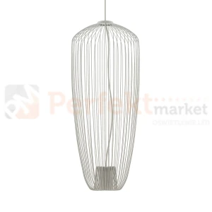 Lampa Nowodvorski PUMPKIN S w wersji Silk gray to nowoczesna lampa wisząca o delikatnej formie, która wnosi do wnętrza lekkość i styl. Smukły, długi klosz z ażurową strukturą ze stalowych prętów tworzy niebanalną kompozycję — elegancką, ale nienachalną.