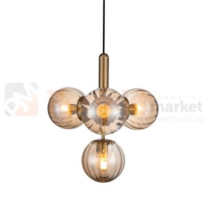 Lampa wisząca Ravena bursztynowa mosiądz Italux PND-2324-4B BRO+AMB