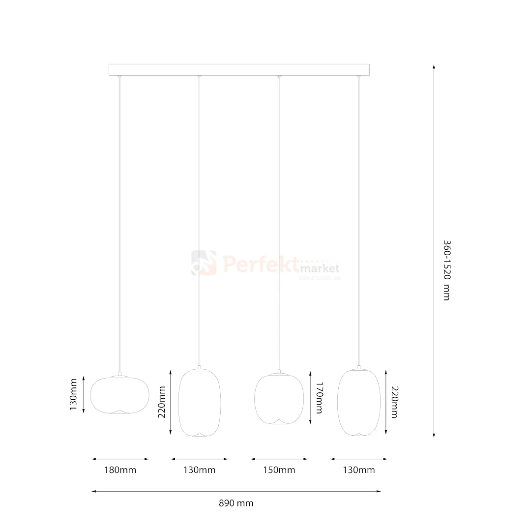 Lampa wisząca VASO 15 – z prostokątną podsufitką i zróżnicowanymi kloszami