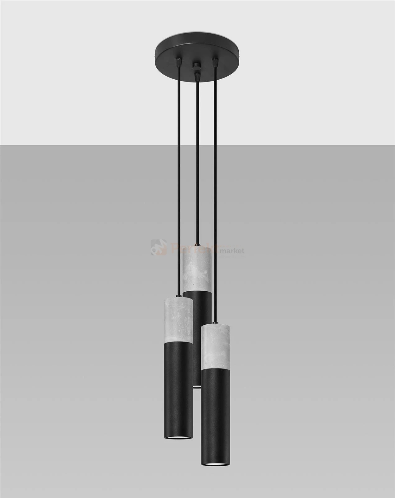 Lampa wisząca beton stal BORGIO 3P walce czarna Sollux SL.1081