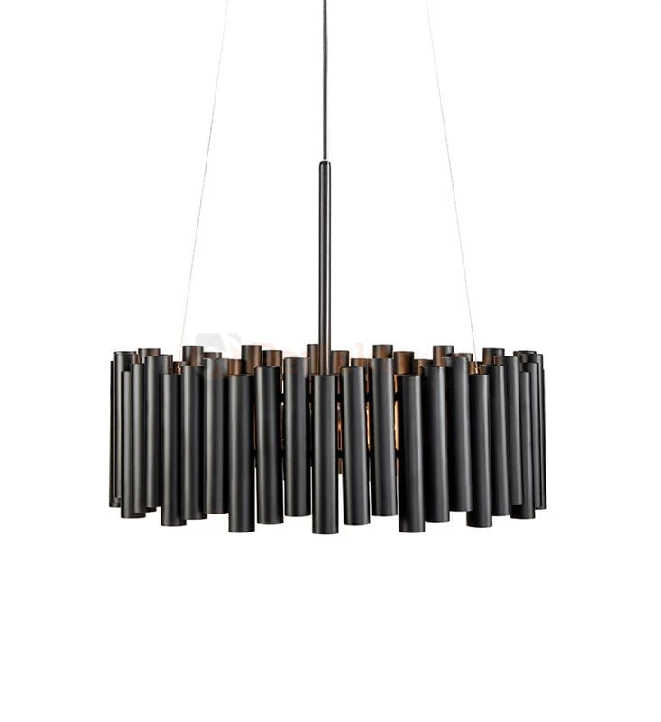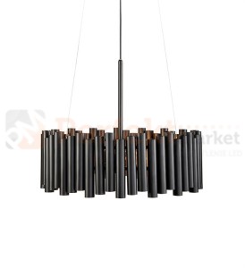 Lampa wisząca w nowoczesnym stylu w formie żyrandola składającego stalowych rurek w zczranym kolorze. Jej oryginalny design doskonale komponuje się we wnętrzach w odważnym i stonowanych stylu.