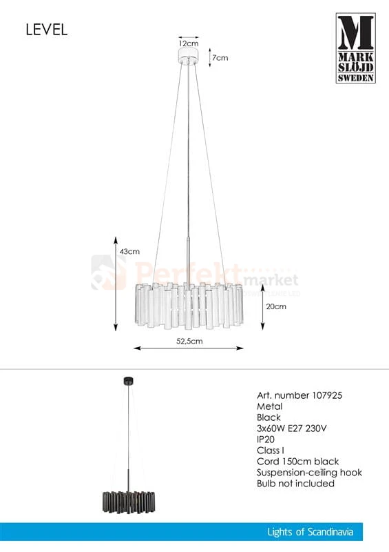 Lampa wisząca czarne rurki LEVEL pendant 3L Markslojd 107925