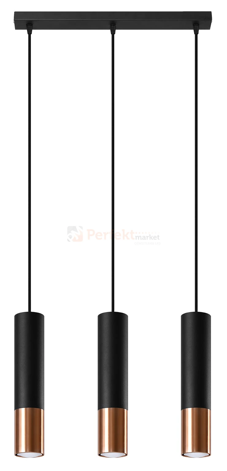 Nowoczesna lampa wisząca czarna, miedź 3 tuby LOOPEZ SL.0948