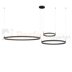 Nowoczesna lampa w nowoczesnym wydaniu - lampa wisząca, w skład której wchodzą trzy kręgi o wymiarach 40/60/80 cm, to idealne oświetlenie do dużych pomieszczeń, lub takich gdzie potrzebujemy dużo światła. Każdy z wiszących pierścieni może być umieszczony na różnej wysokości, mogą one być też rozmieszczone według indywidualnej koncepcji i aranżacji - bliżej lub dalej od siebie. Punktem wspólnym jest podsufitka lampy.