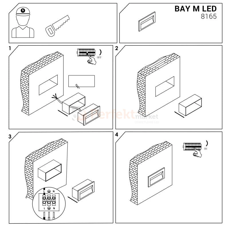 Oprawa ścienna do montażu podtynkowego wykonana z aluminium. Oprawa BAY LED M sprawdza się w oświetleniu elewacji, bocznego oświetlenia schodów czy ogrodzeń. Oprawa z wbudowanym modułem LED o mocy 5W i barwie światła białej ciepłej. Strumień świetlny generowany przez oprawę to 360lm. Oprawa o klasie szczelności IP65