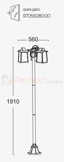 Lutec latarnia ogrodowa klasyczna 191cm Kelsey 3xE27 czarna IP44 7273606012