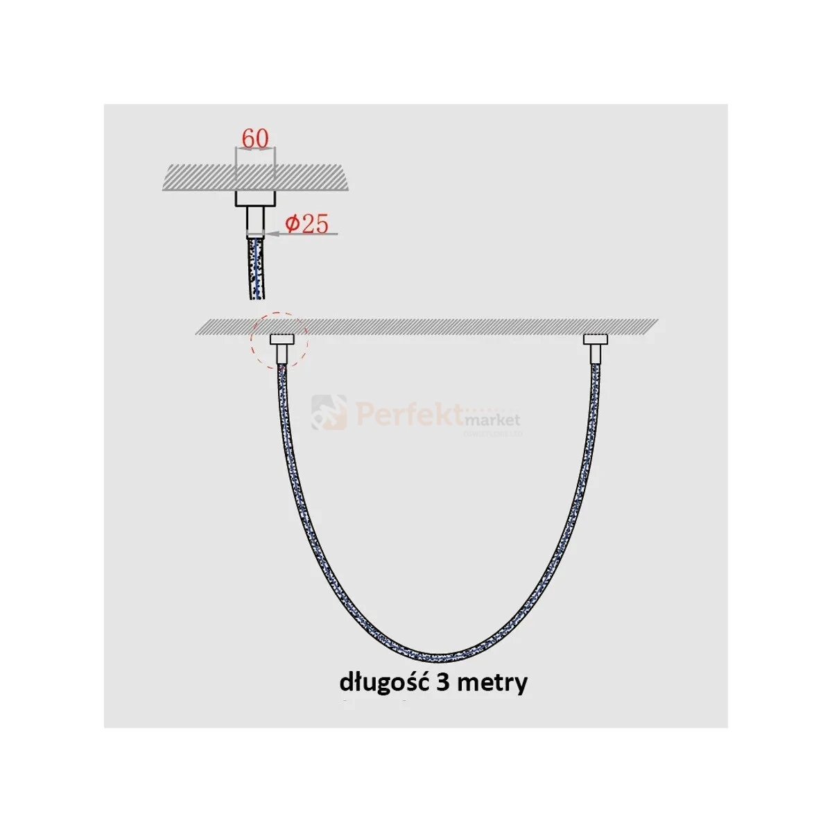 - Średnica podsufitki: 60 mm