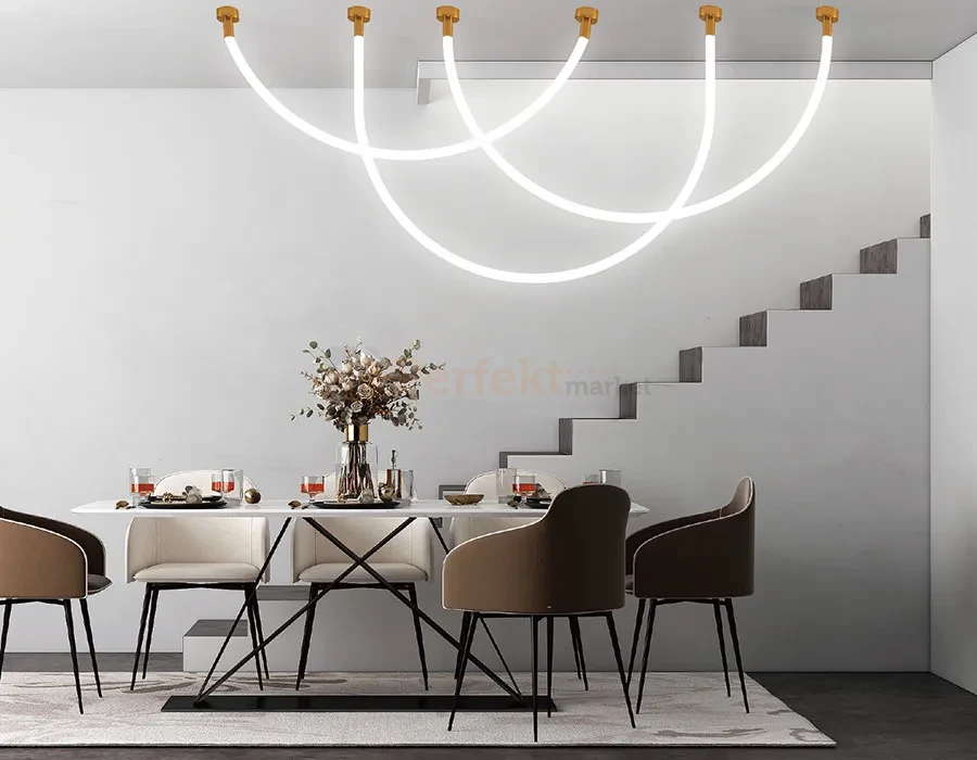 Lampa wisząca Rope Light 3M – nowoczesne światło w eleganckiej formie - przykład nowoczesnego, minimalistycznego designu, który doskonale wpasuje się w różne style wnętrz. Jej prosta forma sprawia, że z łatwością odnajdzie się zarówno w przestrzeniach klasycznych, jak i bardziej awangardowych. Lampa składa się z dwóch złotych, metalowych podstaw oraz elastycznego, białego przewodu z akrylu, wypełnionego energooszczędnym światłem LED. Możliwość regulacji barwy (2700–6500K) i natężenia światła pozwala dopasować oświetlenie do każdej sytuacji. Dodatkowo, lampa jest kompatybilna z aplikacją Tuya Smart, co zapewnia wygodne sterowanie z poziomu smartfona czy tableta, również spoza domu.