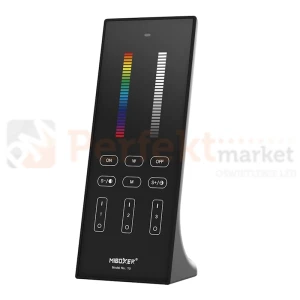 Elegancki stojący pilot Y3 do ściemniania sterowania kolorami RGB oraz zmiany barwy światła białego CCT, został wykonany z antypoślizgowego tworzywa sztucznego a przednia dotykowa płyta z miękkiego, odpornego na zarysowania szkła. Komunikuje się z odbiornikami MiBoxer za pomocą transmisji bezprzewodowej 2,4GHz, dzięki czemu ma zasięg jego działania do 30m.