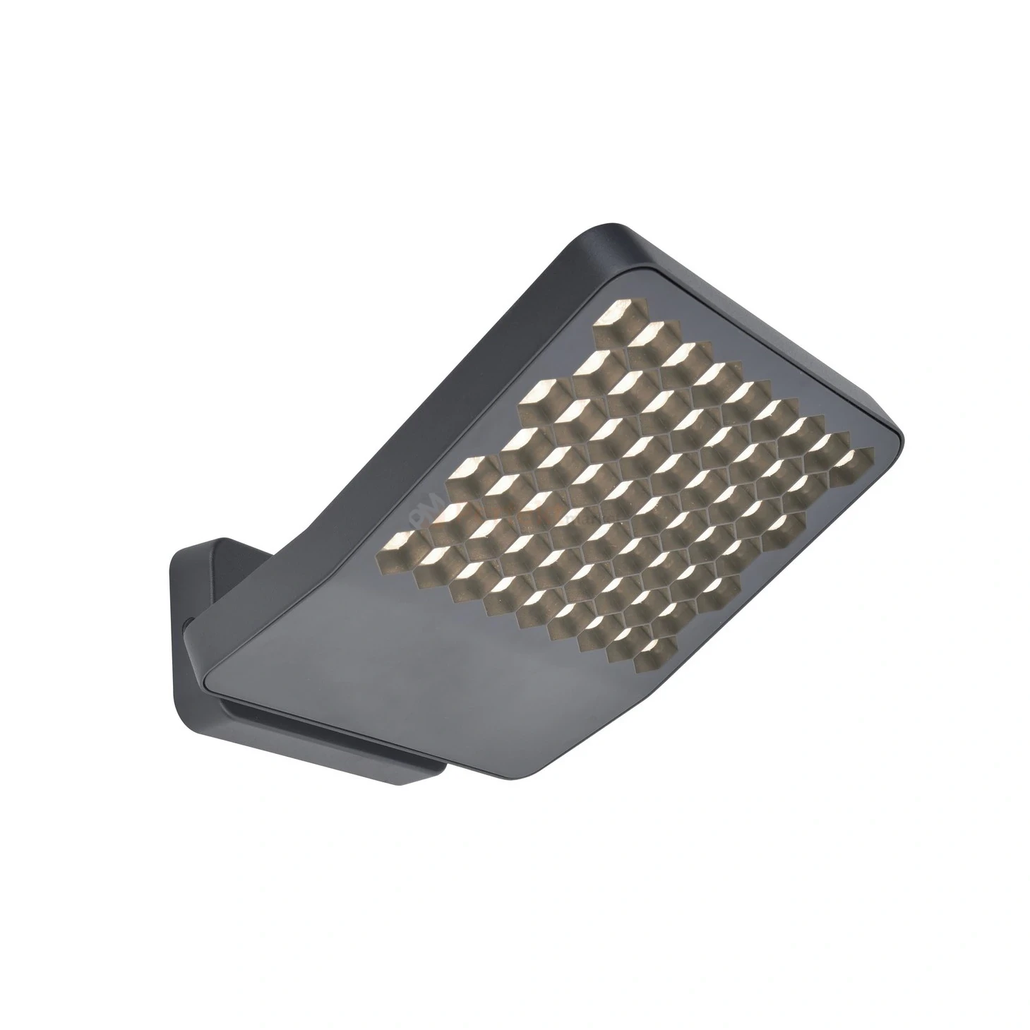 Lampa dostępna jest w eleganckim ciemnoszarym kolorze, który doskonale komponuje się z nowoczesnymi aranżacjami przestrzeni zewnętrznych. Zastosowane przezroczyste dyfuzory z kompozytu PC w unikalnym kształcie plastra miodu zapewniają optymalne rozproszenie światła, zwiększając jego estetykę oraz skuteczność oświetleniową.