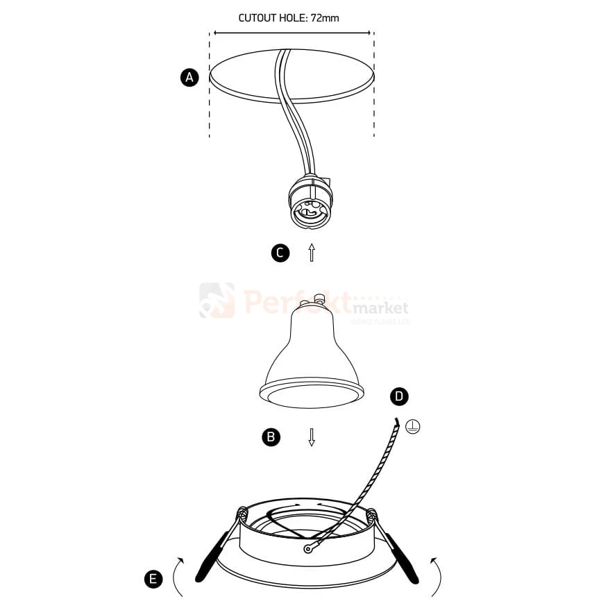 Otwór montażowy (zalecany): 7,2 - 7,5 cm.