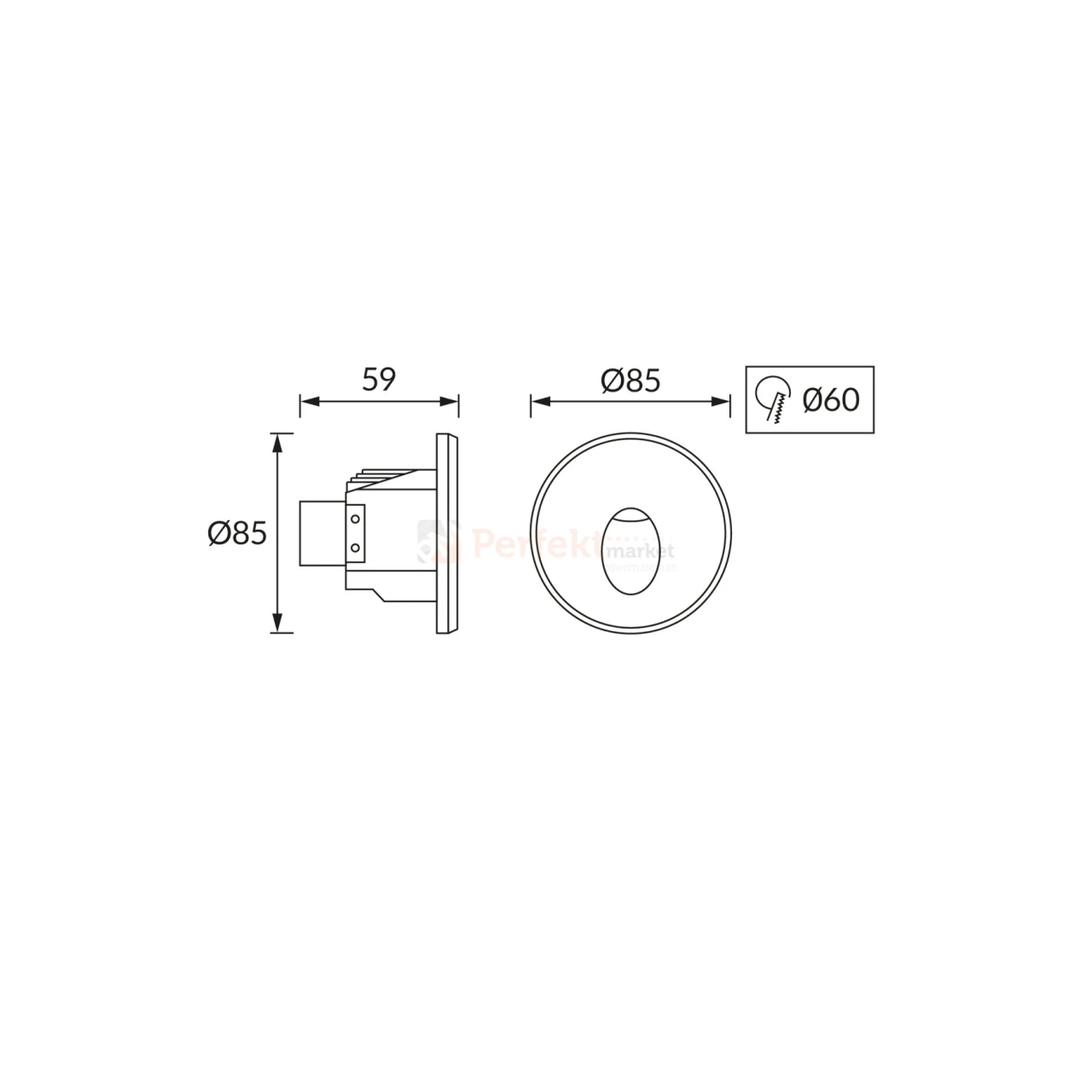 Wbudowany driver LED w oprawę pozwala na zasilanie jej bezpośrednio z sieci napięciem 230V. Oprawę montuje się klasycznej puszcze elektrycznej o średnicy 60 mm.