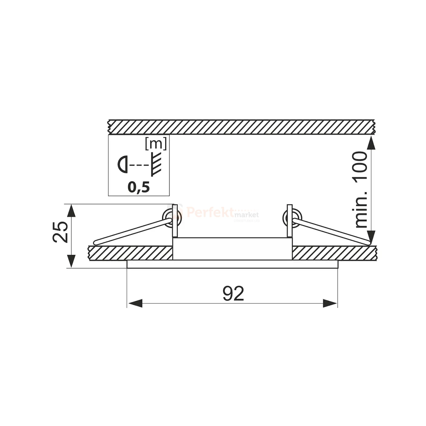 Oprawa sufitowa przystosowana jest do żarówek halogenowych, LED (MR16, GU10) o średnicy 50mm