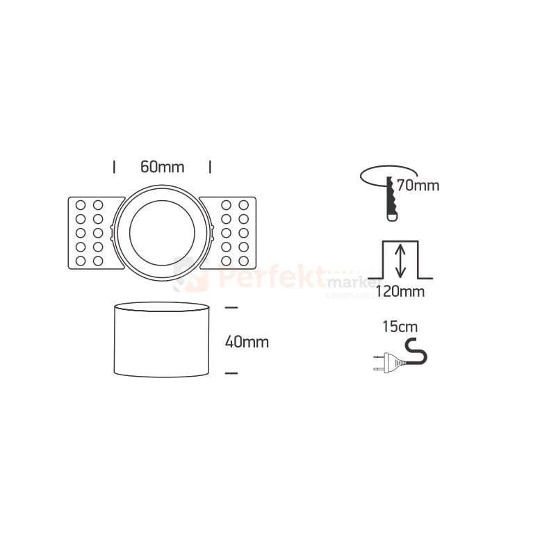 - Zalecany otwór montażowy: 70 mm