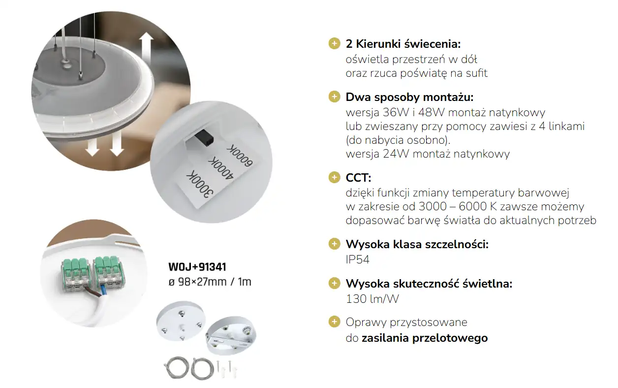 - barwa światła CCT - zmienna