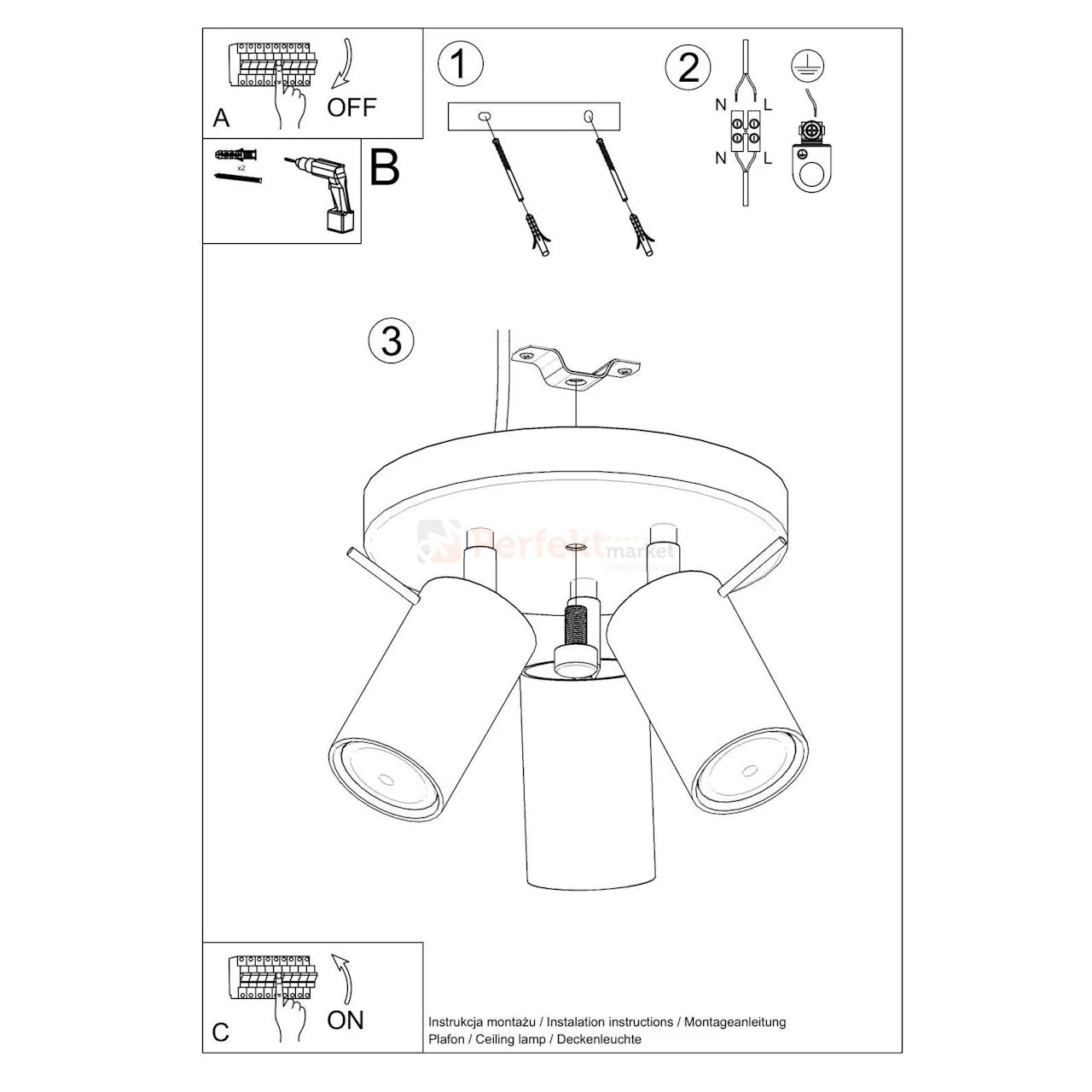 - Ilość źródeł światła: 3
