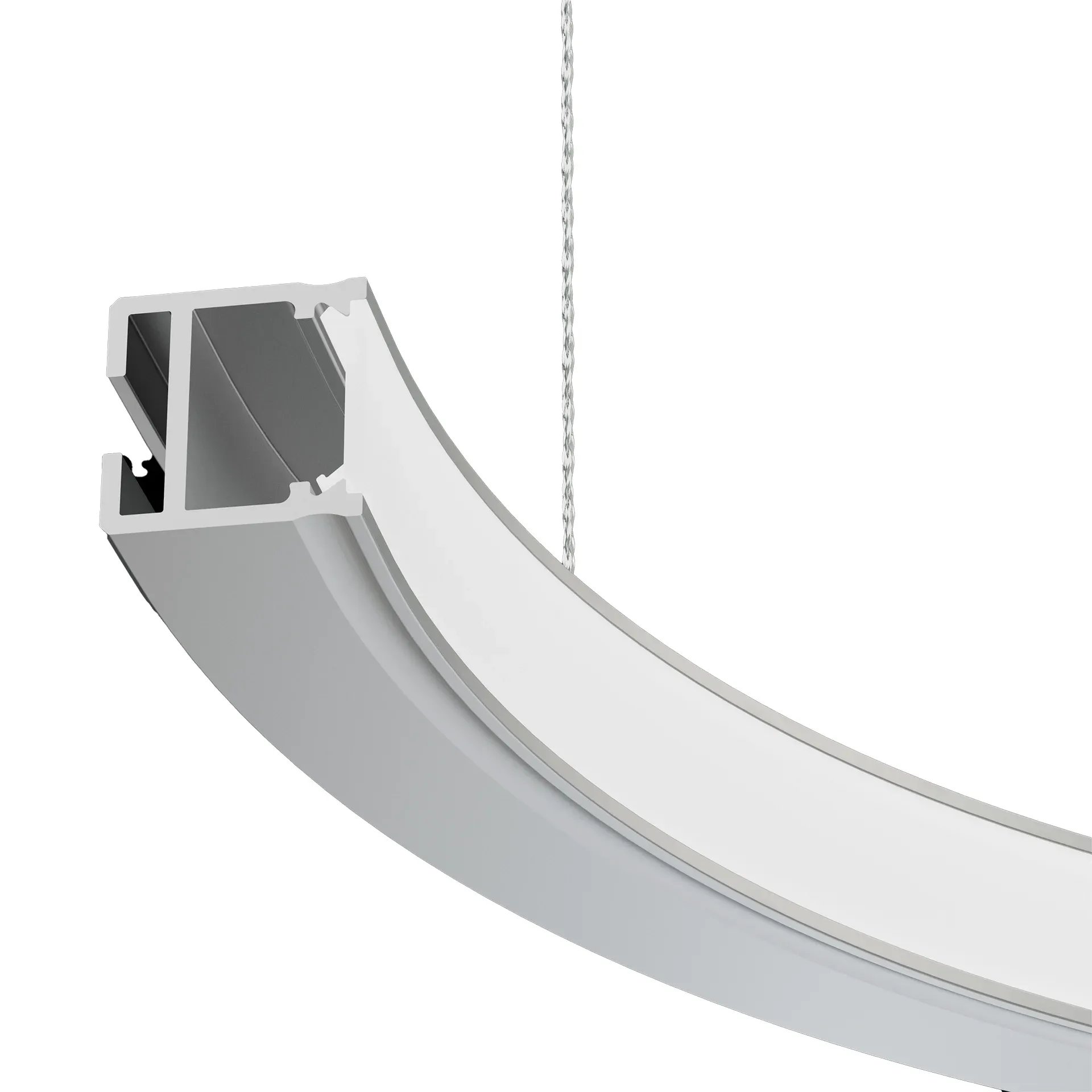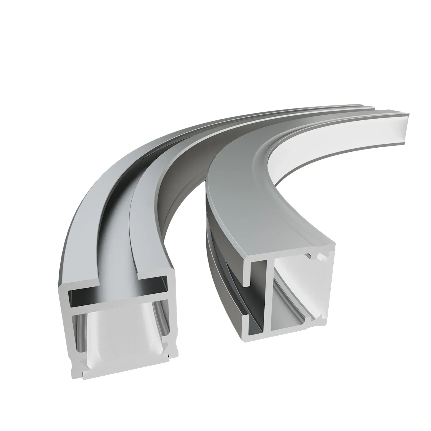 Profil pozwala budować ciągłe, zakrzywione linie światła przy zachowaniu wysokiej stabilności oraz estetyki oprawy. Po wygięciu nie traci parametrów mechanicznych ani optycznych — bez niepożądanych odkształceń, „załamań” linii światła czy spadku jakości efektu.